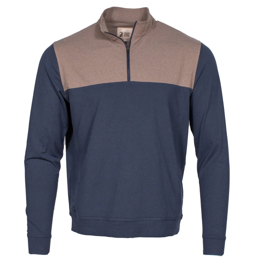Introducing the Bark Terra Tek Quarter Zip from Jack and Sage – a refined and versatile quarter zip designed for those who appreciate the simplicity of nature's earth tones. With a rich earthy bark top and a classic navy torso, this quarter zip is the perfect addition to your wardrobe for a comfortable, understated style all year round.