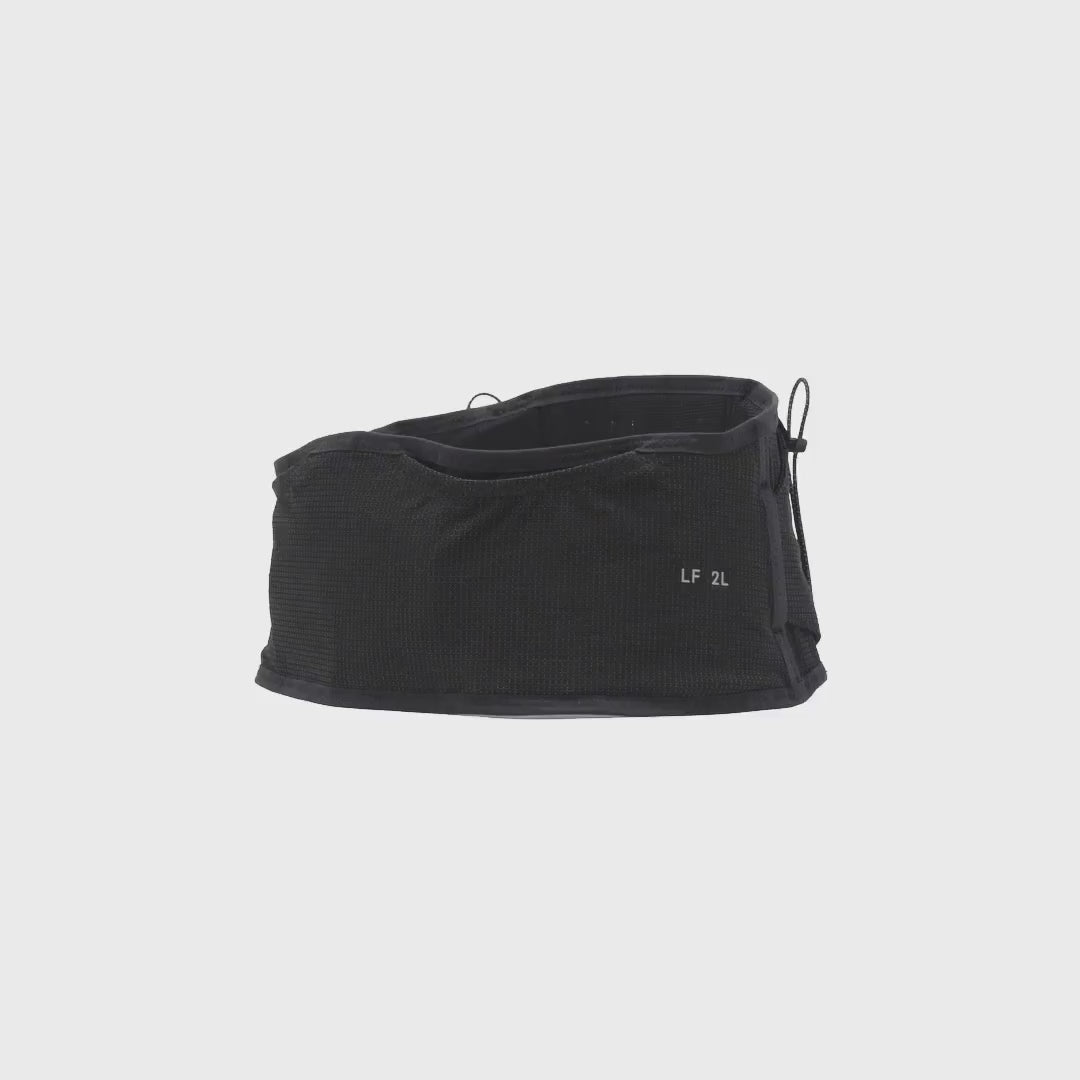 Built to enhance the freedom of running. The LF 2L was designed to run further with nothing on your back. Featuring a suspension system to stabilize the back pocket, the LF 2L is the first bounceless running belt and can take the place of a vest for most runs. 650mL Hydrapak flask with a locking cap is included with every belt. The LF 2L is patent pending.
