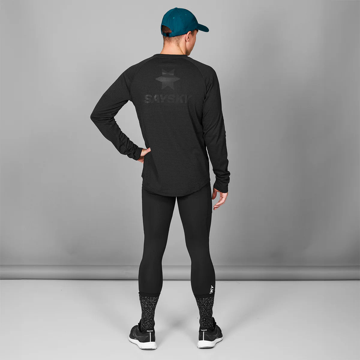 The SAYSKY Blaze Long Sleeve Light Fleece is a men's running lightweight fleece in black made from 100% recycled polyester. It features a SAYSKY label on the front and a big reflective SAYSKY logo on the upper back. The fit is regular and designed to provide you with both comfort and warmth on colder days. This style is also a great choice for layering.